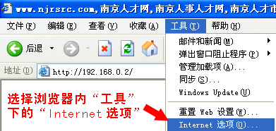 選擇瀏覽器工具欄內“工具”下的“Internet選項”